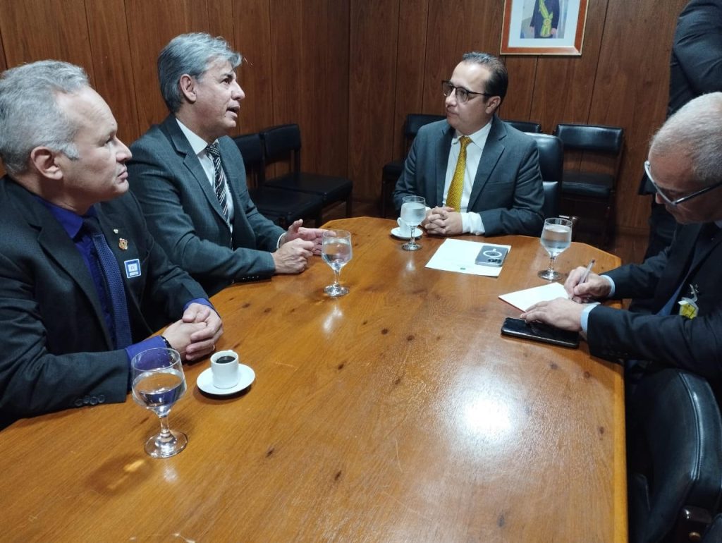 Os diretores presidente e vice-presidente legislativo da Afojebra, Mário Medeiros Neto e Joselito Bandeira e o presidente da Fesojus, Eleandro Alves foram recebidos em audiência no Palácio do Planalto pelo assessor especial de assuntos parlamentares e federativos da Secretaria-Geral da Presidência da República, Antônio Carlos Valadares Filho.