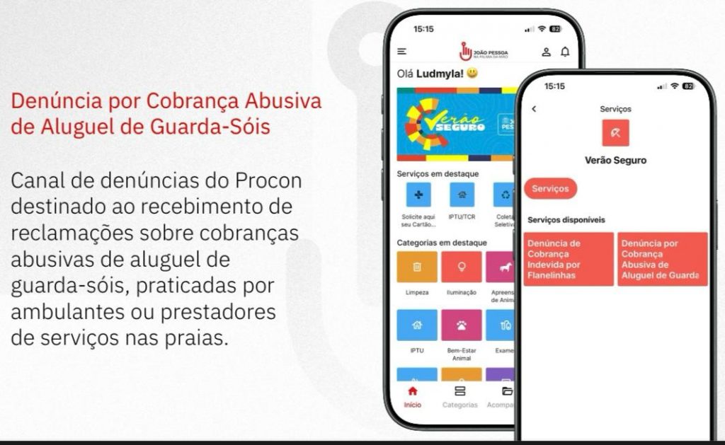O Verão Seguro é um canal oficial em que é possível fazer dois tipos de denúncias. A primeira função é receber reclamações contra cobranças indevidas feitas por flanelinhas em vias e espaços públicos da cidade, e podem ser enviadas direto para a Guarda Civil. A segunda liga o consumidor diretamente ao Procon-JP e está destinada ao recebimento de reclamações sobre cobranças abusivas de preços de produtos e serviços, a exemplo de aluguel de guarda-sóis e alimentos, praticadas por ambulantes ou prestadores de serviços nas praias.