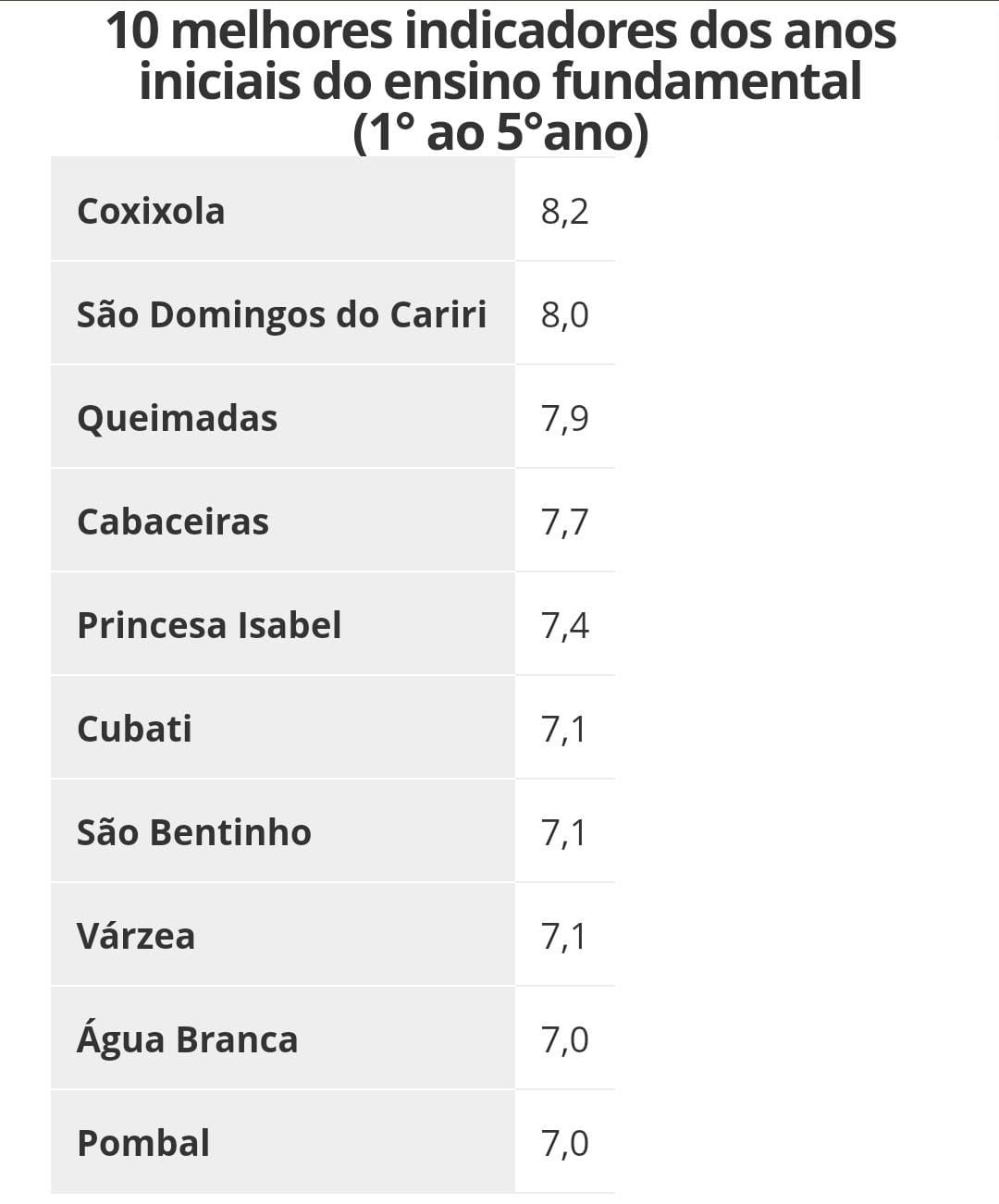 Municípios como Coxixola, São Domingos do Cariri, Queimadas e Cabaceiras obtiveram notas melhores do que a cidade de Princesa Isabel, como mostra a planilha abaixo.