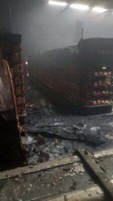 Já em outros conteúdos, produzidos na área interna do Cestão, é possível observar as prateleiras queimadas além de bastante destruição.