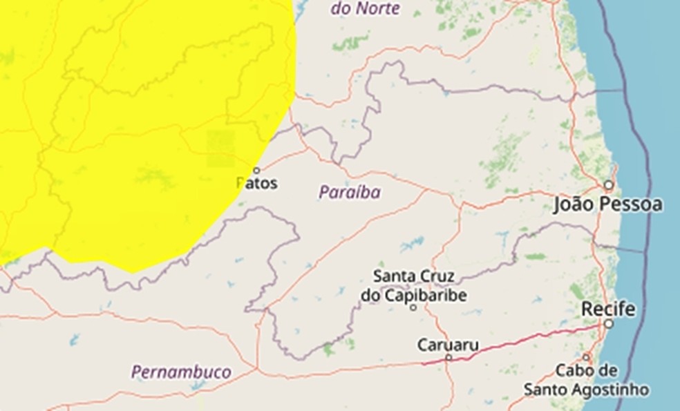 O Instituto Nacional de Meteorologia (Inmet) emitiu um alerta amarelo de perigo potencial de baixa umidade, para 75 municípios da Paraíba. O aviso vale até 19h desta quarta-feira (14).