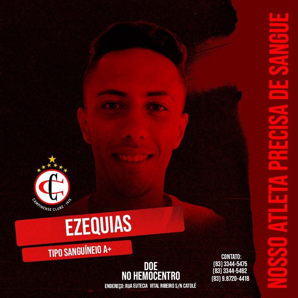 O volante do Campinense, Ezequias, foi internado às pressas na terça-feira (29) após sofrer um mal-estar dentro de casa. Já nesta quarta-feira (30), um boletim médico do clube atestou que o atleta foi diagnosticado com “doença hematológica aguda”. Ele precisou passar por transfusão de sangue e, em paralelo a isso, o Campinense está tentando a sua transferência para João Pessoa para ser consultado por um especialista em sangue.