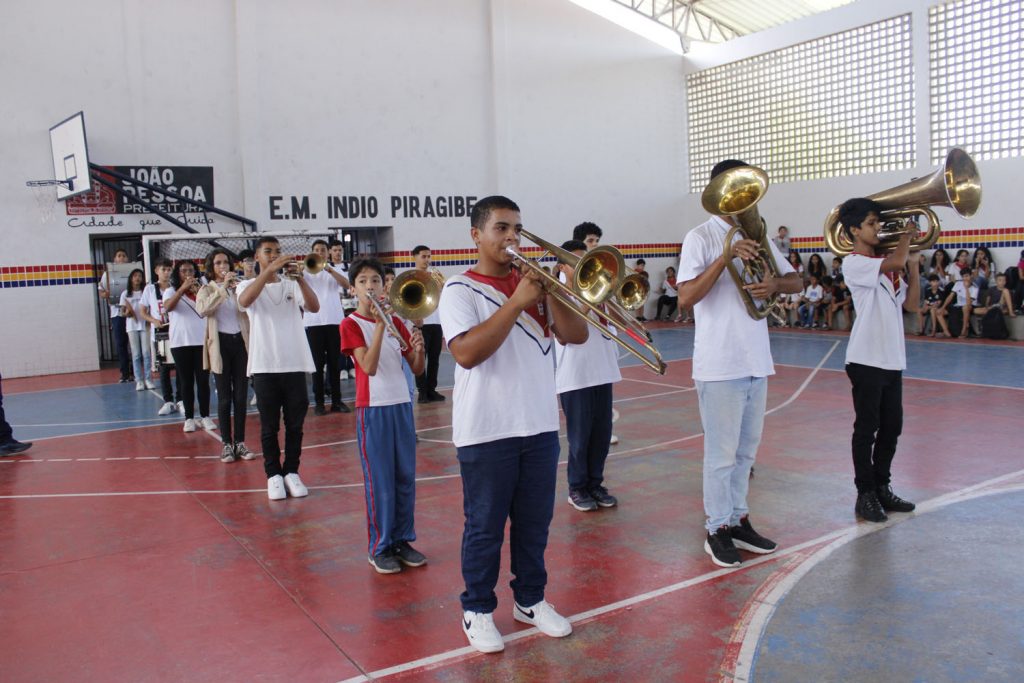 A Banda Marcial da Escola Municipal Índio Piragibe, localizada no bairro de Mangabeira, é composta por 40 músicos e 42 alunas que compõem o corpo coreográfico e baliza.