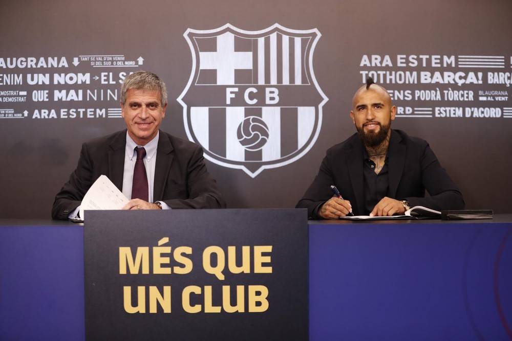 Uma das maiores contratações da Barcelona na temporada, o meia Arturo Vidal teve uma manhã movimentada no novo clube. O jogador realizou exames médicos, assinou contrato e foi oficialmente apresentado na equipe catalã nesta segunda-feira, na tribuna do Camp Nou. Vidal posou segurando a camisa azul e grená – ainda sem número – e afirmou estar feliz por atuar no time que classificou como “melhor do mundo”.