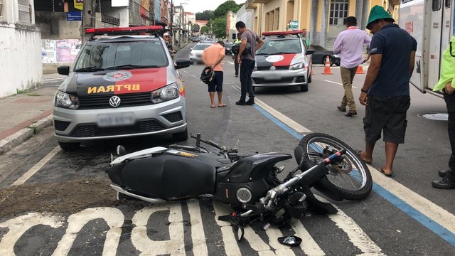 Acidente entre moto e ônibus deixa ferido no Centro Histórico em João Pessoa