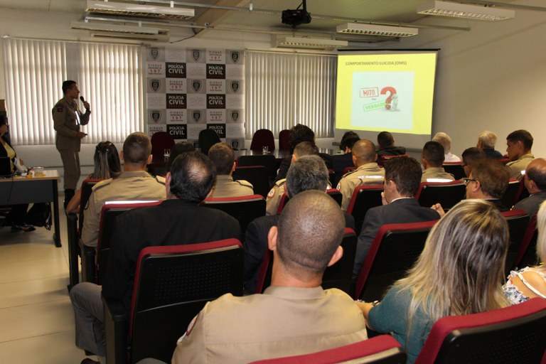 O Núcleo de Saúde Ocupacional (NSO) da Secretaria de Estado da Segurança Pública e da Defesa Social realizou, nessa terça-feira (17), palestras com a temática ‘Escolha viver’, em alusão ao Setembro Amarelo. O evento, realizado no auditório da Central de Polícia Civil, no bairro do Geisel, foi aberto ao público e voltado para policiais civis, militares, bombeiros militares e outros profissionais do sistema de segurança pública. As palestras fazem parte do Movimento Internacional de Conscientização e Prevenção do Suicídio, realizado durante o mês, conhecido como Setembro Amarelo.