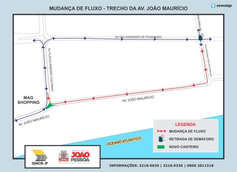 O trecho final da Avenida João Maurício e parte da Rua Antônio Batista Araújo, no Jardim Oceania, terão seus sentidos de circulação alterados a partir desta sexta-feira (23). A mudança foi confirmada pela Superintendência Executiva de Mobilidade Urbana de João Pessoa (Semob-JP) nesta quinta-feira (22).