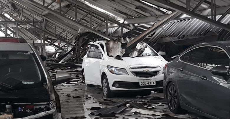 O teto da concessionária Dão Silveira, da Chevrolet, desabou na madrugada desta quarta-feira (24) em decorrência das fortes chuvas que caíram na Paraíba. A sede da empresa fica localizada na Avenida João Suassuna, no Centro da Campina Grande.