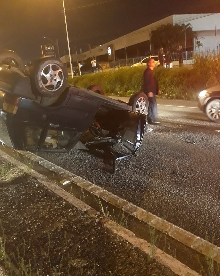 Um carro capotou no quilômetro 16 da BR-230, no sentido Cabedelo/João Pessoa, por volta das 22h desta quinta-feira (26).
