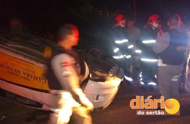 Um carro pertencente a Câmara Municipal de São José de Piranhas se envolveu em um acidente por volta das 22h desta terça-feira (08/05) na BR 230 próximo ao Campus da UFCG no município de Sousa.De acordo com informações da polícia militar, um carro não identificado teria invadido a contramão da pista e para não bater de frente o condutor do outro veículo desviou mas perdeu o controle do volante do automóvel que saiu da pista e capotou.