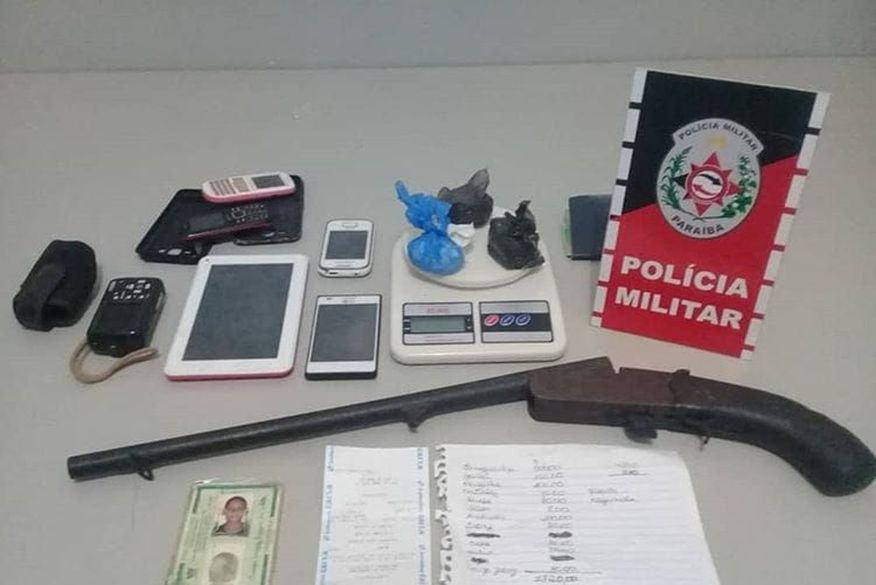 Com a dupla foram encontrados trouxinhas de drogas, balança de precisão, lista com nomes de possíveis compradores, uma espingarda, além de vários celulares.