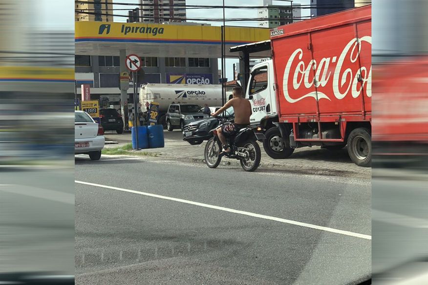 O flagrante aconteceu por volta das 14h32, na Avenida João Câncio, em Manaíra. O homem, usando apenas bermuda e sem camisa, estava sem capacete e conduzindo a motocicleta com sandálias, quando o Código de Trânsito Brasileiro veda a utilização de calçado que não se firme nos pés ou que comprometa a utilização dos pedais.