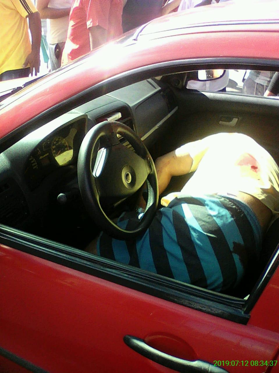 Pela imagem compartilhada via WhatsApp, o carro subiu a calçada, o que aparenta que o condutor foi atingido com o veículo em movimento.
