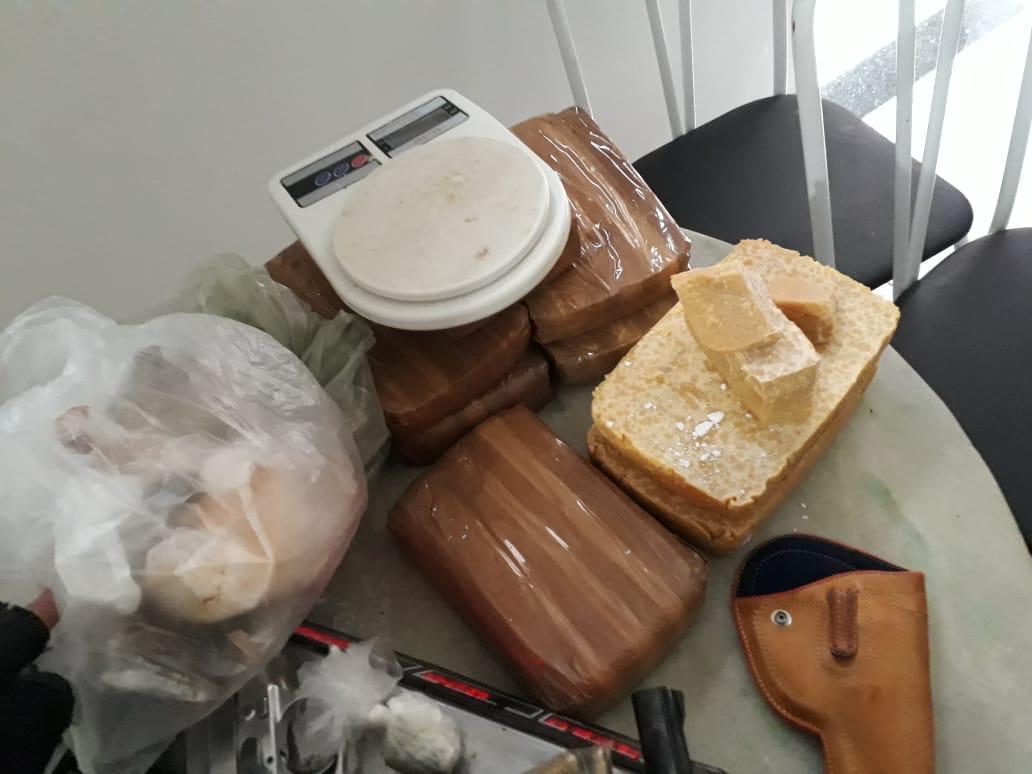 A Polícia Militar desarticulou um laboratório de cocaína que funcionava no Conjunto Novo Milênio, na Zona Sul da Capital. No local, que servia para o preparo de cocaína e seus derivados, foram apreendidos mais de 10 kg de drogas, quatro armas de fogo, munições, dois maçaricos, duas balanças de precisão, 1 litro de loló, quatro baldes com reagentes químicos usados na preparação de entorpecentes e liquidificadores para processar o produto. Um casal foi preso em flagrante pelas equipes da Força Tática e da 5ª Companhia do 5º Batalhão.