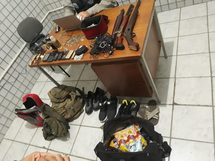 Com os acusados, de 18, 16 e 15 anos, a PM apreendeu duas armas de fogo e recuperou celulares, dinheiro, relógios, mochilas, tênis, sandálias, acessórios de maquiagens, caixas de sabonete, lanterna e até duas conchas de cozinha – todos produtos dos roubos praticados pelo trio na noite dessa sexta-feira.