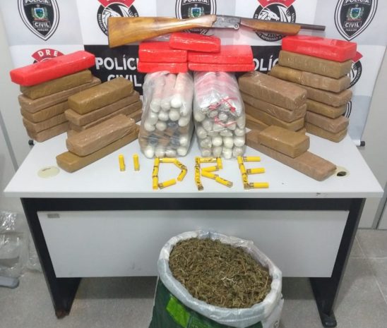 A Polícia Civil chegou ao local depois de receber uma denúncia anônima, através da linha 197. O depósito fica no bairro Malvinas. Lá estavam 60 quilos de maconha, 5 quilos de cocaína, uma arma longa e 47 artefatos explosivos. Não foi confirmada a prisão de nenhum suspeito no local.