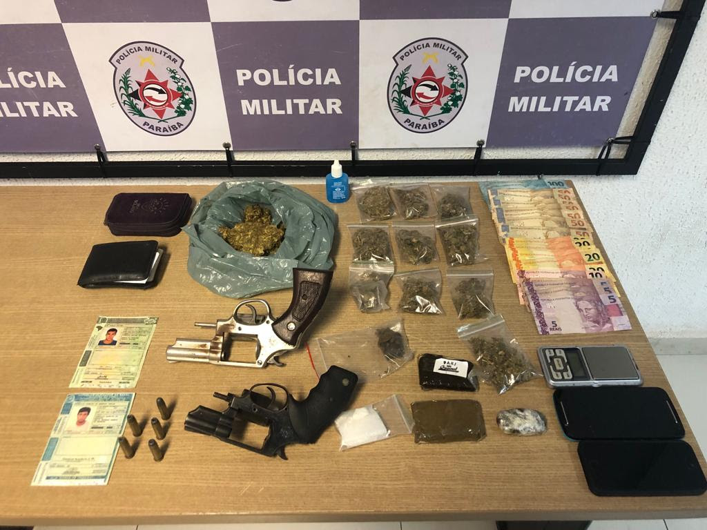 A Polícia Militar interceptou dois suspeitos que estavam com drogas e duas armas de fogo em um carro, nessa terça-feira (27), em João Pessoa. A ação começou na zona sul da capital, passando pelo bairro do Bessa, e foi encerrada com a prisão da dupla, na Avenida Cruz das Armas.