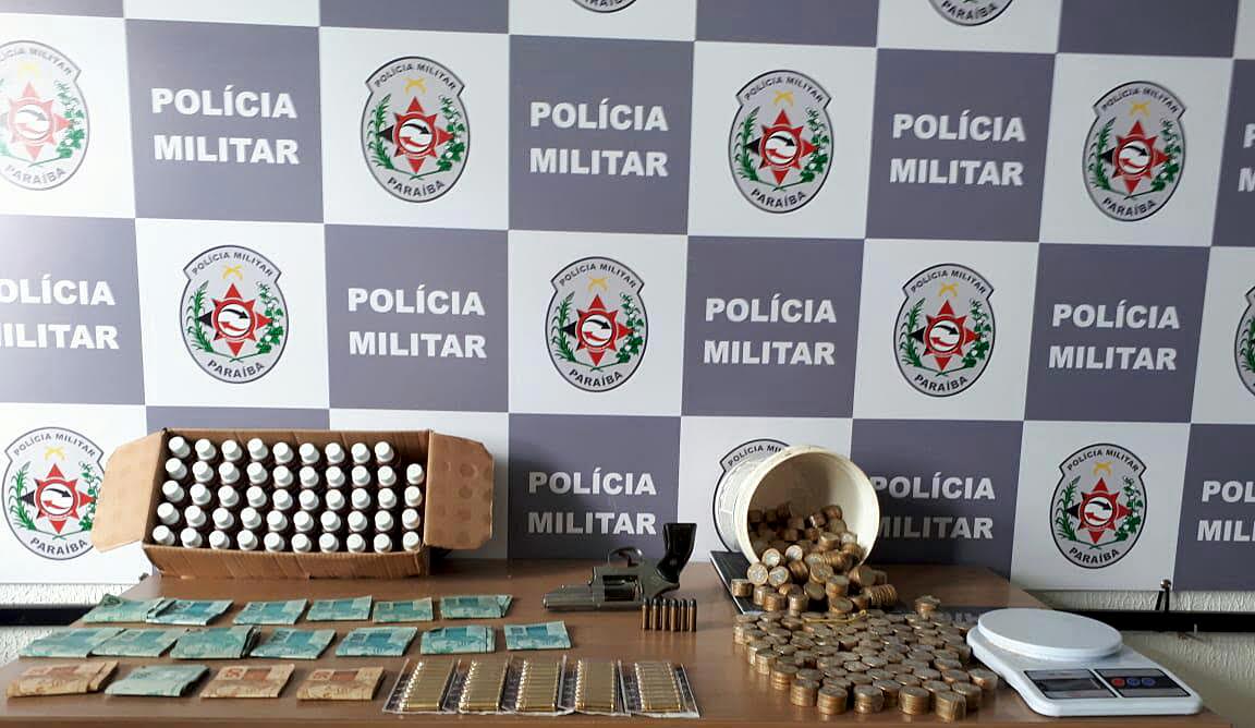 Na residência, foi encontrado um revólver calibre 38, cerca de 60 munições, balança de precisão, 49 frascos de hipoclorito de sódio com 50 ml, um caderno com contabilidade da prática de agiotagem (empréstimo de dinheiro fora do mercado de crédito legítimo) e mais de R$ 16 mil.