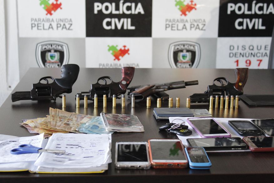 Dentro das casas dos suspeitos foram apreendidos materiais relativos ao tráfico de drogas, como dinheiro trocado, um caderno com anotações do movimento nos pontos de vendas de entorpecentes, balança de precisão e quatro armas de fogo, três revólveres calibre 38 e uma pistola calibre 45.