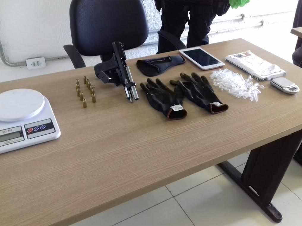 Uma operação realizada pela Polícia Militar prendeu três homens, no fim da manhã desta sexta-feira (27), resultando na captura de um foragido, cumprimento de mandado de prisão, e apreensão de uma arma de fogo no bairro do Jardim Veneza, zona sul João Pessoa. Com o trio, a PM encontrou ainda balanças de precisão, embalagem para distribuição de drogas, caderno de anotações do tráfico, máquina de cartão de crédito e luvas.