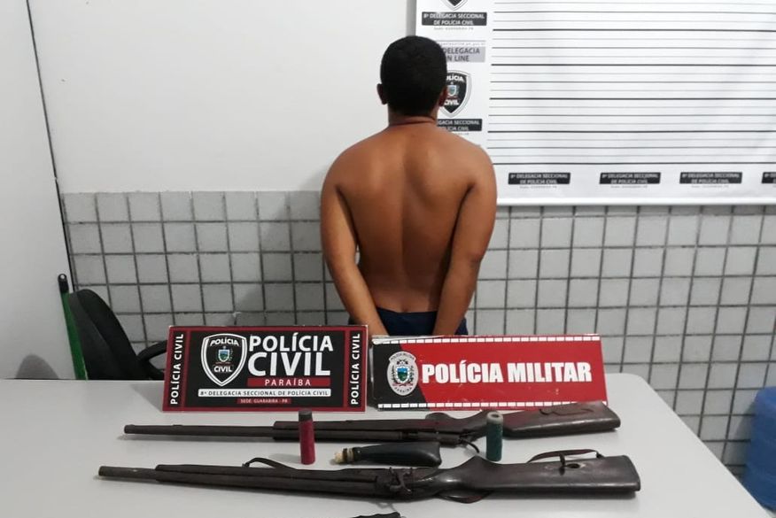 Policiais militares e civis apreenderam duas espingardas de calibre indefinido e um punhal com um homem de 22 anos que estaria ameaçando moradores do bairro Santo Amaro, também em Araçagi.