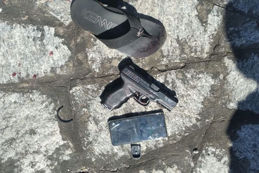 O comparsa na motocicleta fugiu e o suspeito atingido ficou no local. Foram apreendidos um aparelho celular e uma arma de fogo.