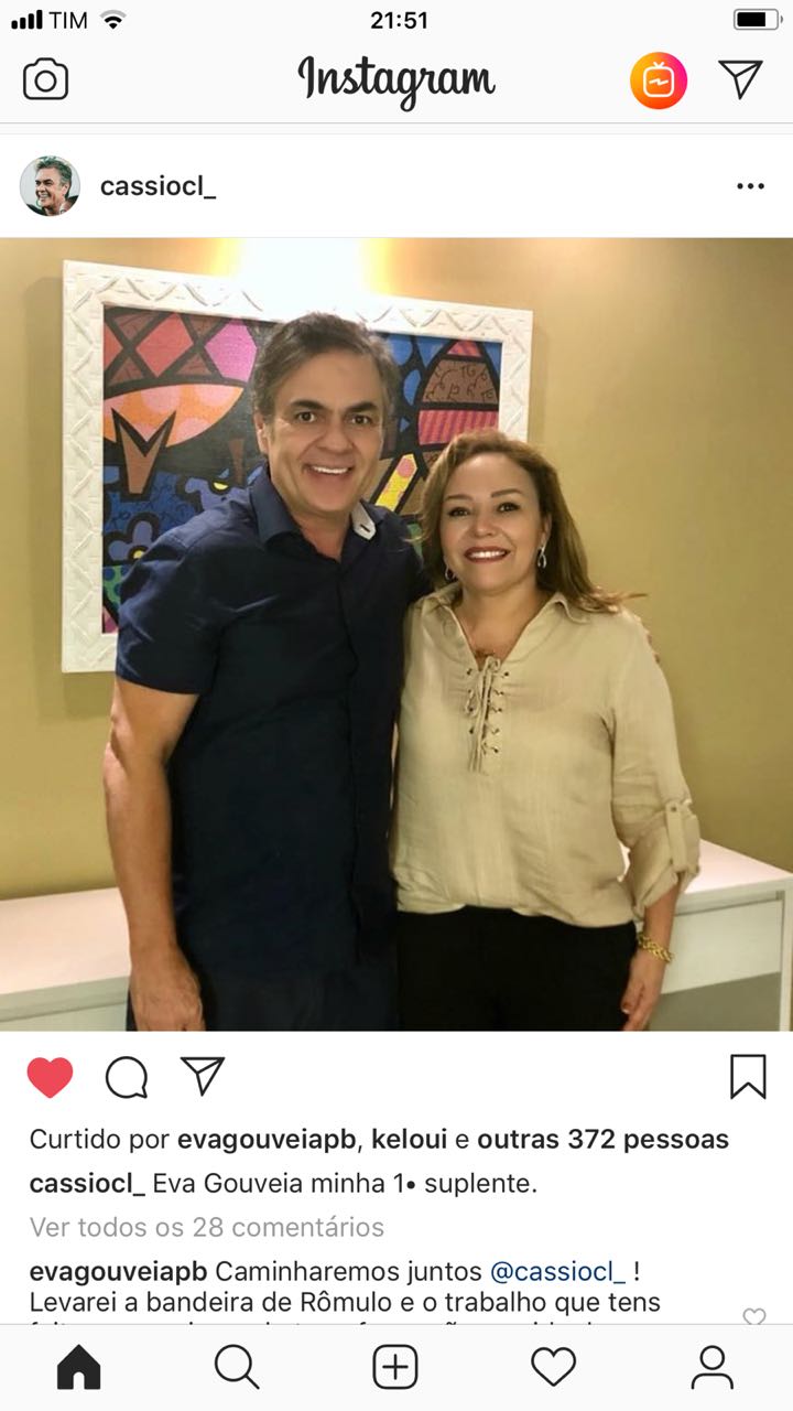 Cássio utilizou as suas redes sociais para anunciar Eva como sua suplente. Isa Arroxelas será a segunda suplente.