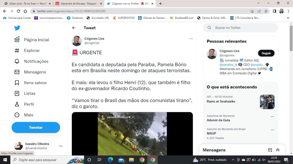 A ex-primeira-dama do Estado e candidata derrotada mais uma vez à Câmara Federal, Pâmela Bório, resolveu envolver o próprio filho, Henri, que é menor de idade, às manifestações golpistas contra a República.