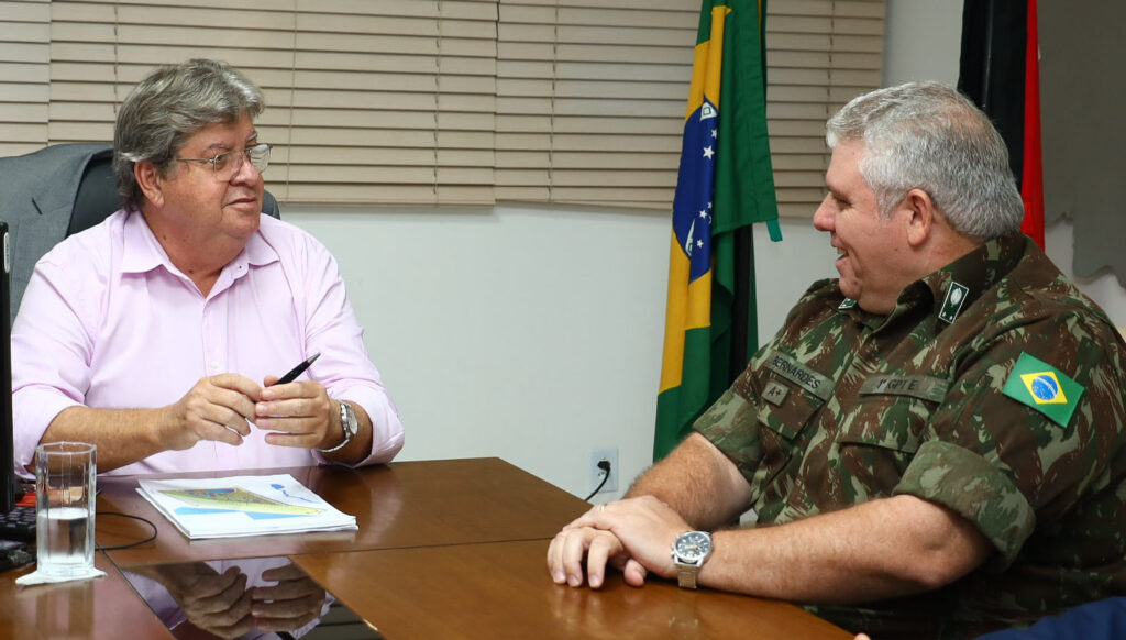 O governador João Azevêdo recebeu, nesta terça-feira (17), na Granja Santana, em João Pessoa, a visita de cortesia do general de brigada Guilherme Bernardes, novo comandante do 1º Grupamento de Engenharia (1º Gpt E), sediado na Capital paraibana.