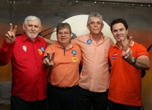 O periscópio do Tá na Área flagrou uma cena pitoresca numa gravação da campanha socialista deste ano. A cena ilustra a total falta de entrosamento entre João Azevedo e Veneziano Vital, candidatos ao governo e senado pelo PSB, e o petista Luiz Couto, que disputa a senatória. Além deles, no vídeo, gravado no estádio O Almeidão, na Capital, também é possível visualizar o governador Ricardo Coutinho (PSB).