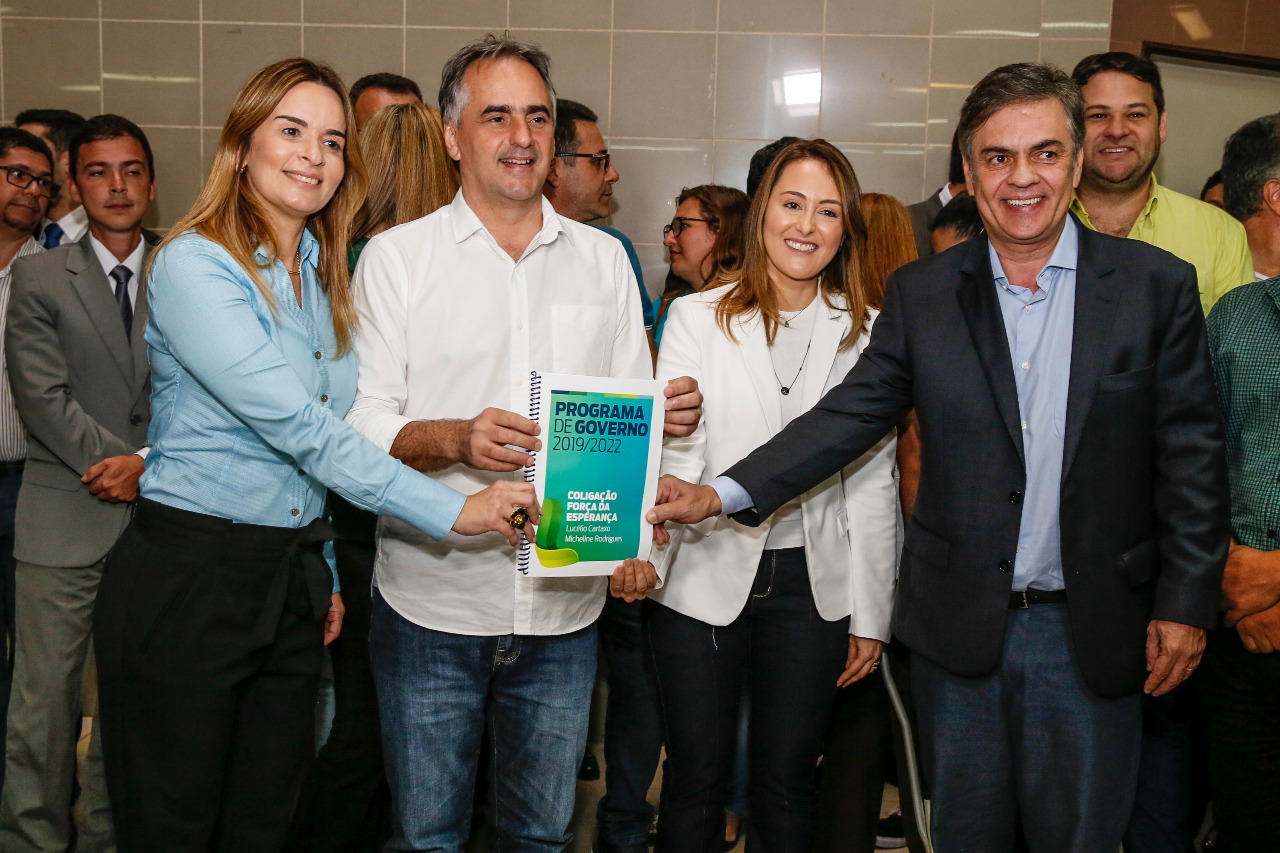Ao lado da candidata a vice-governadora, Micheline Rodrigues (PSDB), e dos candidatos ao Senado, Daniella Ribeiro (PP) e Cássio Cunha Lima (PSDB), Lucélio falou da oficialização da “Coligação Força da Esperança”.